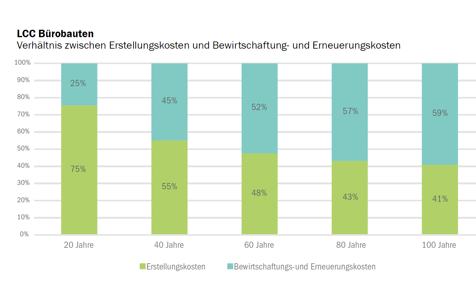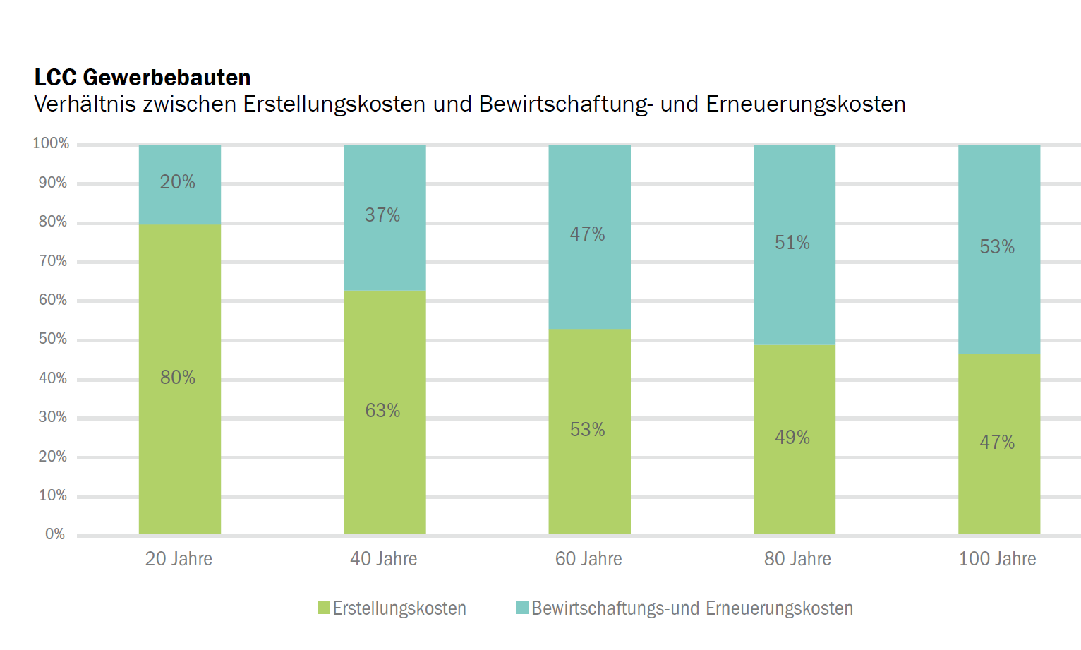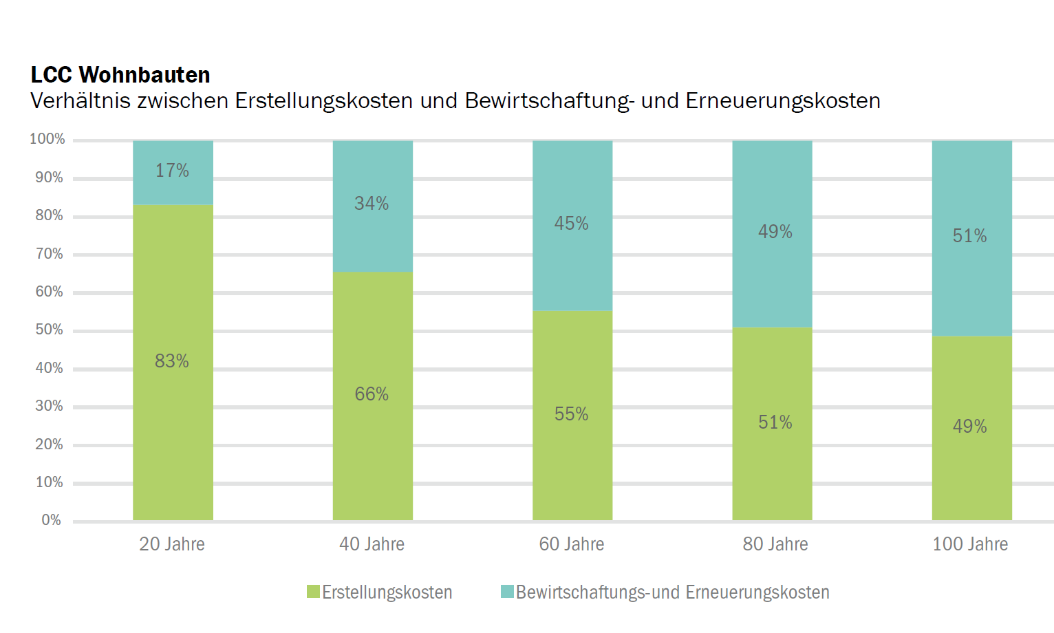 Die nachhaltige Entwicklung unserer Welt beschäftigt auch die Immobilienwirtschaft seit einigen Jahren stark. Professionelle wie auch öffentliche und private Investoren, Eigentümer und Mieter sind bestrebt, den neuen ökologischen, sozialen, aber auch wirtschaftlichen Anforderungen gerecht zu werden. Während in den letzten Jahren vor allem die ökologische Dimension der Nachhaltigkeit im Vordergrund stand, rücken zunehmend auch soziale Themen wie beispielsweise bezahlbarer Wohnraum in den Brennpunkt. Aber wie steht es mit der Wirtschaftlichkeit? Immobilien sind langlebige Objekte, die einerseits Geld erwirtschaften können, aber anderseits über den ganzen Lebenszyklus viel kosten. Zu einer nachhaltigen Immobilienentwicklung gehören nicht nur ökologische oder soziale Aspekte wie zum Beispiel die Reduktion der CO2-Emissionen oder eine mieterfreundliche Entwicklung, sondern auch ein sorgfältiger Umgang mit den Lebenszykluskosten. Das bedingt, dass sich Immobilieneigentümer bei jeder Investition Gedanken darüber machen, welche Kosten die geplanten Massnahmen im Lebenszyklus der Immobilie auslösen.