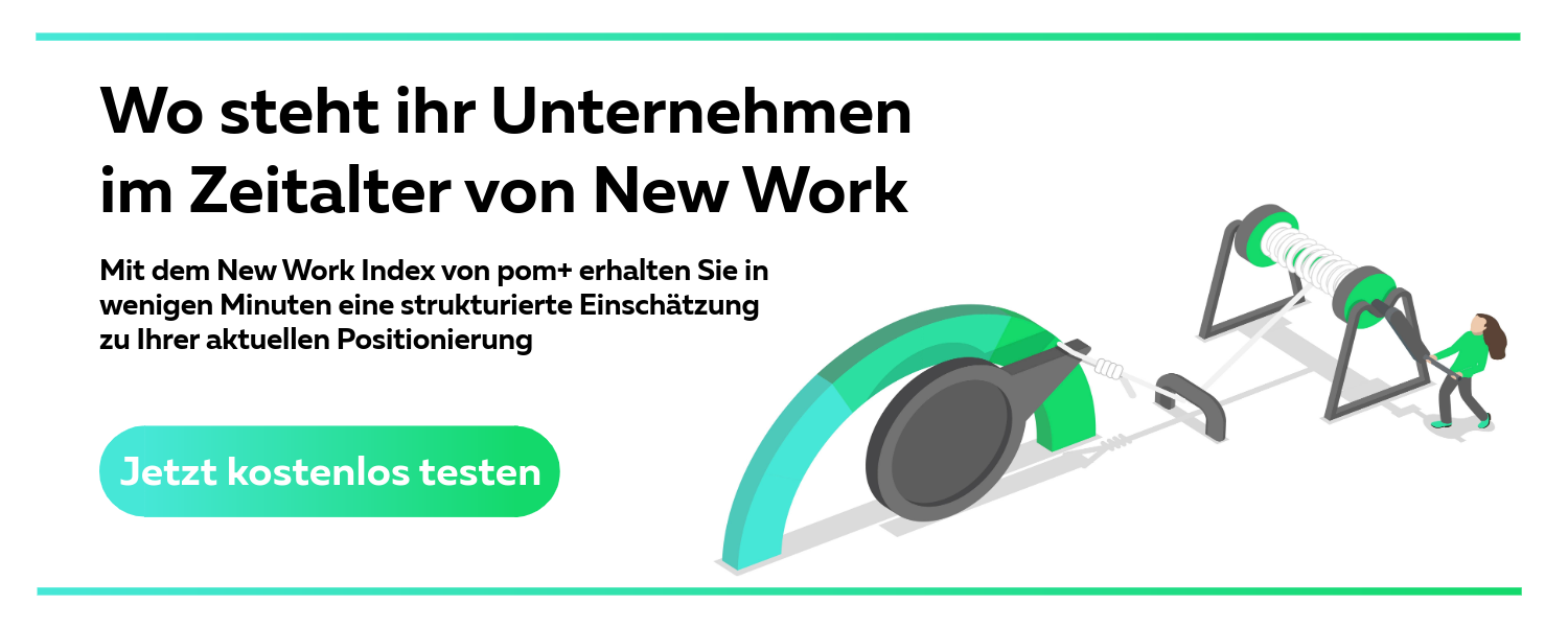 Der New Work Index von pom+ liefert Antworten. Er zeigt, wie reif Ihre Organisation im Kontext moderner Arbeitswelten ist – datenbasiert, vergleichbar und praxisorientiert.